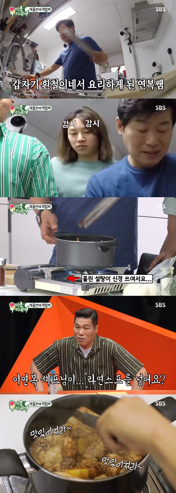 이연복은 김희철 집에 간단한 채소조차 없자 비장의 무기로 라면스프를 넣어 MC들을 놀라게 했다. 완성된 음식을 맛본 김희철과 정준하는 당황했다. 마지막에 김희철이 들이부은 술 때문에 코코넛 향이 났다. 하지만 묘한 매력에 빠져 맛있게 먹었다.