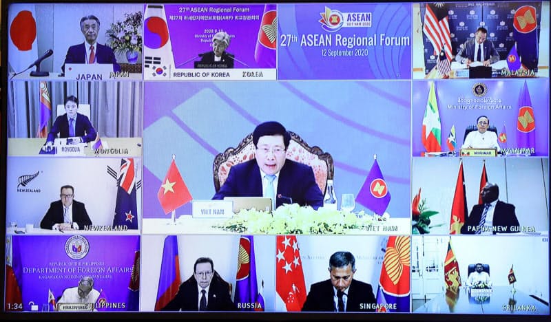 【ハノイ=大西智也】東南アジア諸国連合(ASEAN)は13日、12日にオンラインで開いたASEAN地域フォーラム(ARF)閣僚会議の議長声明を公表した。米中対立が深まる南シナ海情勢について、4日付の声明案段階で記載があった「力の行使やそのような脅しをしない」との表現が盛り込まれなかった。