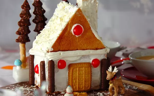 出典:E・レシピ「ヘクセンハウス風クリスマスサンタのお家ケーキ」