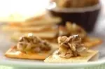 マッシュルームの香りがアクセントになったカナッペ。クラッカーとの相性も抜群です。キリッと冷えた白ワインとのペアリングが◎。みんなでワイン片手に頬張りたい一品です。ホームパーティーはもちろん、ママ友の集まりや女子会にも最適。